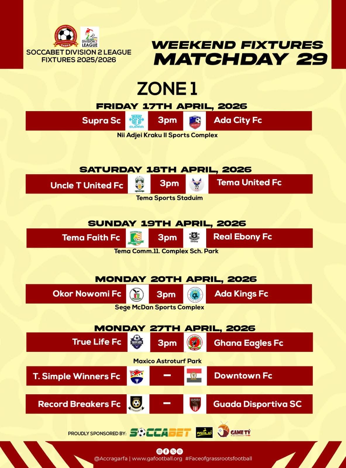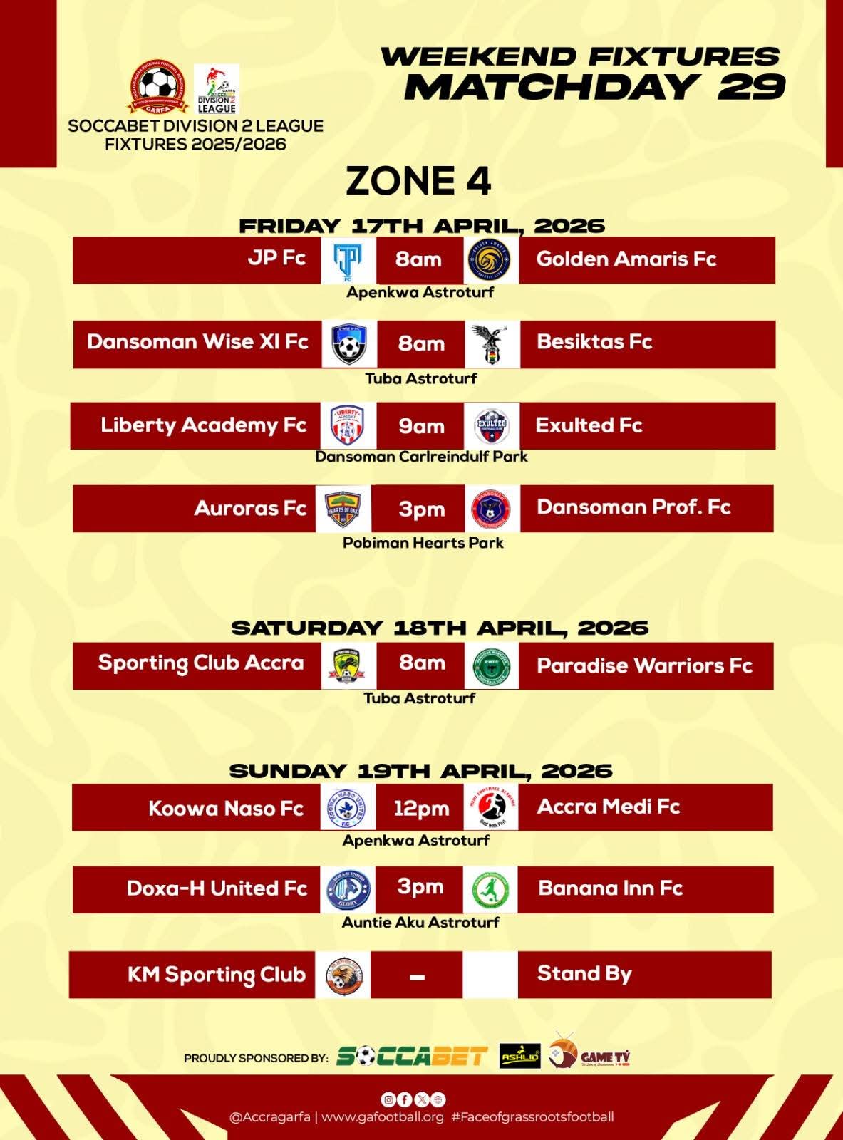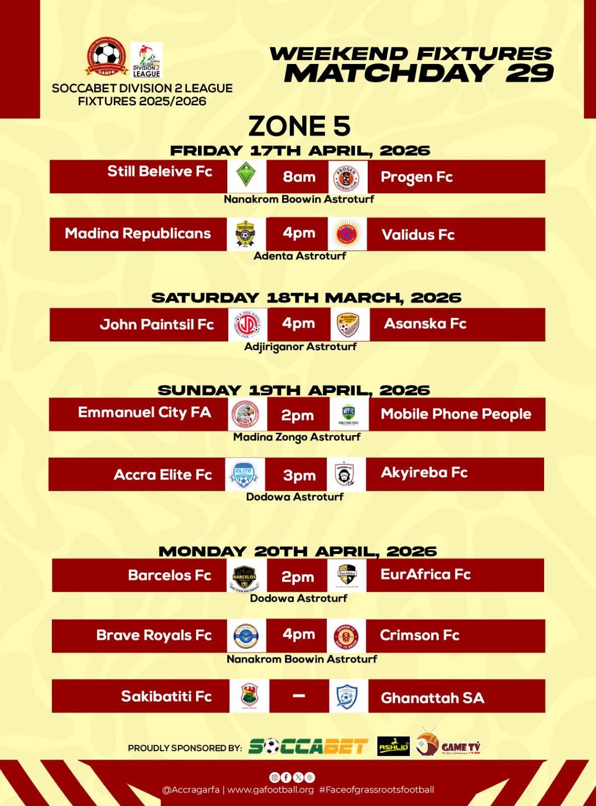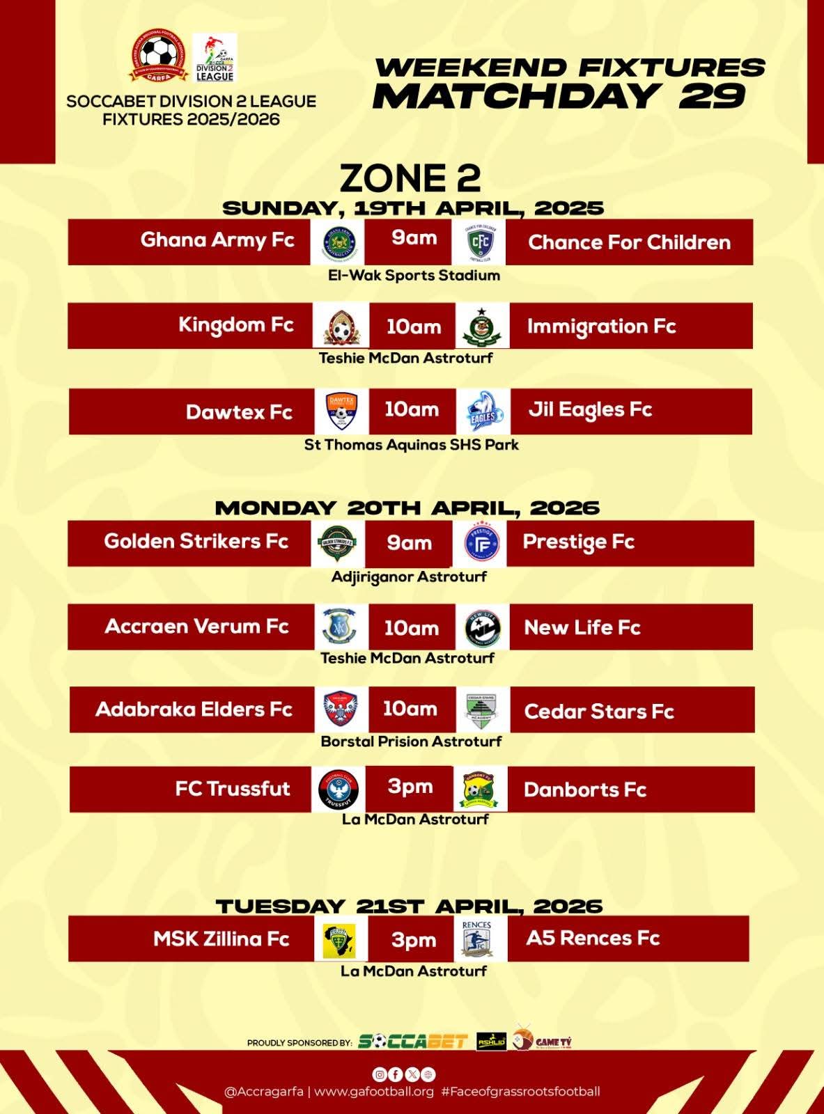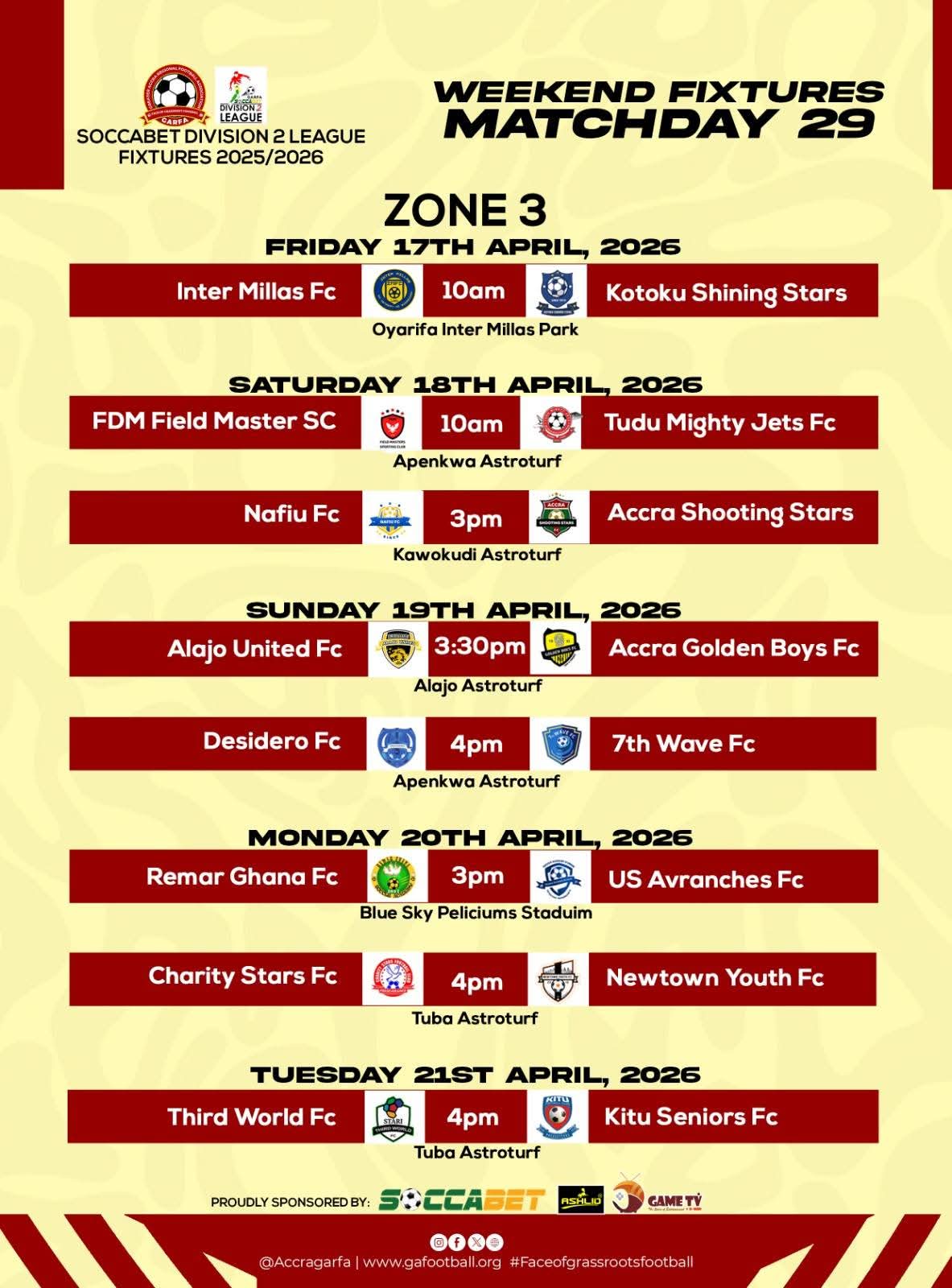 SlideSlideSlide latest News GARFA has staged the second edition of its 2025/26 season SOCCABET Monthly Awards, honouring standout performers in the Division Two League. Posted onFebruary 21, 2026February 21, 2026 0 GFA Successfully Launches U15 Girls Regional Colts League Posted onJanuary 24, 2026January 24, 2026 0 SOCCABET DIVISION TWO LEAGUE RETURNS FOR SECOND ROUND THIS WEEKEND Posted onJanuary 24, 2026January 24, 2026 0 Fixtures & Results Week 29 League Table Week 28